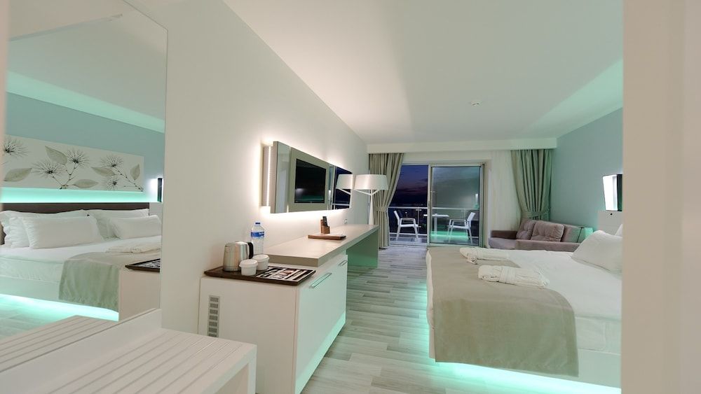 Misafirler için kuru temizleme/çamaşır yıkama servisi, 24 saat açık resepsiyon ve birden fazla dil bilen personel mevcuttur. Kuşadası bölgesinde bir etkinlik mi planlıyorsunuz? Bu otel misafirlerimize 2153 ayak kare alanda konferans alanı sunmaktadır. Gidiş-dönüş havaalanı transfer servisi ücretlidir. Ayrıca ücretsiz otopark vardır.Bu otel, her şey dâhil oteldir. Fiyatlara otelde sunulan yiyecek ve içecekler dâhildir. Bazı restoranlarda, özel yemekler ve yemek çeşitleri, bazı içecekler ve diğer hizmetler için ücret alınabilir.