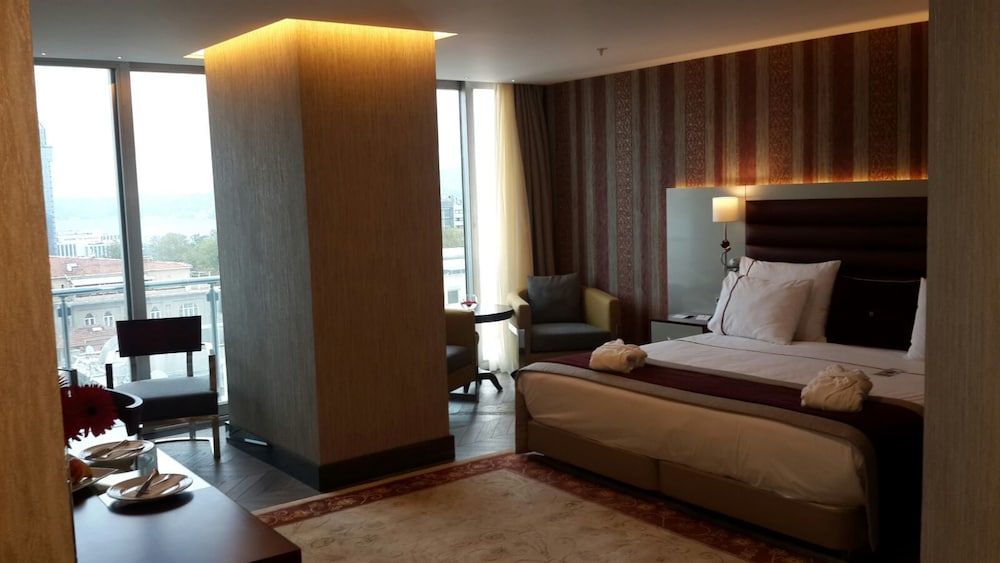 Taksim Gönen Hotel'in klimalı odaları sıcak renkler ve ahşap mobilyalarla şık bir şekilde dekore edilmiştir. Tüm odalar uydu TV, minibar ve saç kurutma makinesi ile donatılmıştır. Bazı odalarda ferah bir oturma alanı vardır. Ücretsiz çay-kahve hazırlama seti ve her gün küçük bir şişe su temin edilir. Muiz Café&Bar'da dondurma, kek ve tatlılar sunulur. Taksim Gönen'de kapalı yüzme havuzu, fitness merkezi, Türk hamamı ve sauna gibi çeşitli sağlıklı yaşam olanakları mevcuttur. İstiklal Caddesi'ndeki birçok mağaza, restoran ve bar, Taksim Gönen Hotel'e yalnızca 400 metre ileride yer almaktadır. Otel, Dolmabahçe Sarayı'na 1,5 km, Galata Kulesi'ne ise 2,2 km uzaklıktadır. Lütfi Kırdar Kongre ve Sergi Sarayı, İstanbul Kongre Merkezi, Cemal Reşit Rey Konser Salonu ve Muhsin Ertuğrul Tiyatrosu ise 2 km mesafededir. İstanbul'da, Taksim Meydanı'na yalnızca 110 metre uzaklıkta yer alan bu otelimiz, düz ekran TV ve hidromasajlı küvet bulunan lüks odalarıyla hizmetinizdedir. Konuklar araç trafiğine kapalı Talimhane Bölgesi'nin keyfini çıkarabilirler.