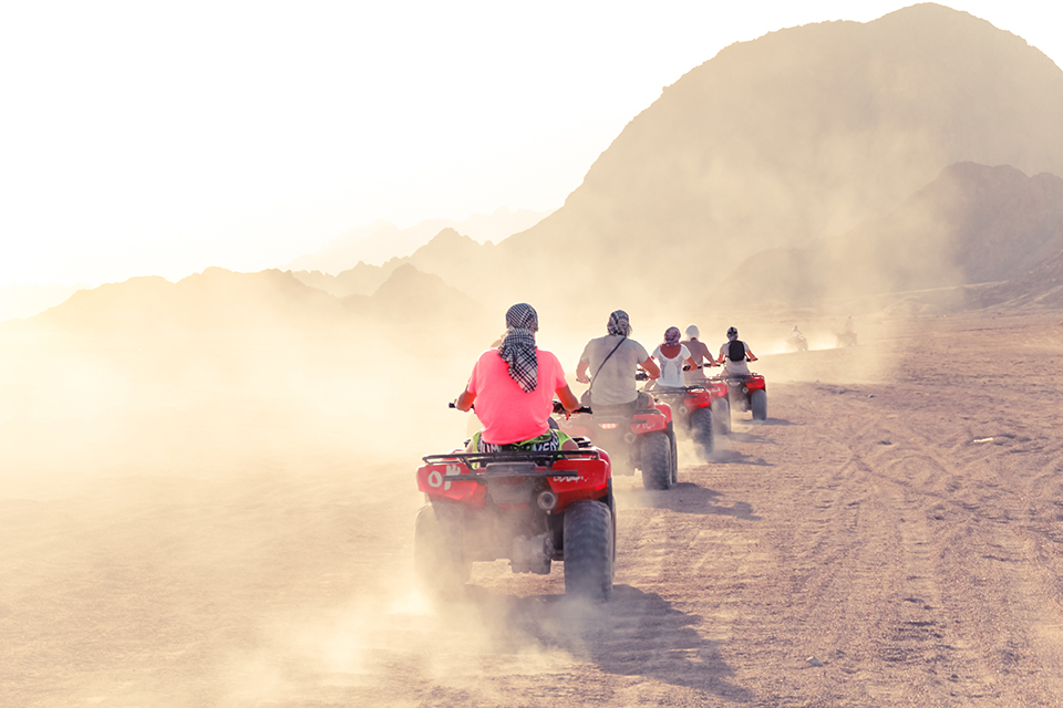 Otelinizden alınarak başlayacak ve yaklaşık 2 saat sürecek aksiyon dolu bu eğlenceli turda 4 tekerli ATV Quad motorlar ile çöl kumlarının arasında adeta dans edecek, muhteşem gün batımında fotoğraf molaları vererek anı ölümsüzleştirecek ve çölde deveye binme imkânı bulacaksınız. Son durağımız olan Bedevi çadırında çay ikramı ile dinlenecek ve otelinize geri bırakılacaksınız. *** Bedevi Çayı ve Kask tur fiyatına dahildir. Baş &Yüz Örtüsü (Poşu), Gözlük ve 1 şişe Su Kişibaşı 6.-USD
