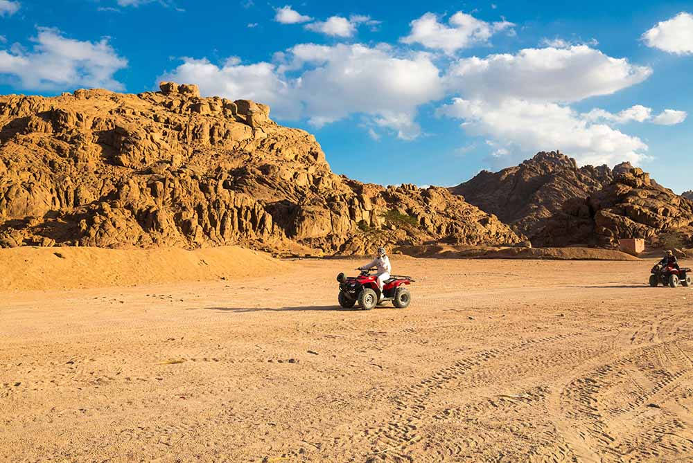 Otelinizden alınarak başlayacak ve yaklaşık 2 saat sürecek aksiyon dolu bu eğlenceli turda 4 tekerli ATV Quad motorlar ile çöl kumlarının arasında adeta dans edecek, muhteşem gün batımında fotoğraf molaları vererek anı ölümsüzleştirecek ve çölde deveye binme imkânı bulacaksınız. Son durağımız olan Bedevi çadırında çay ikramı ile dinlenecek ve otelinize geri bırakılacaksınız. *** Bedevi Çayı ve Kask tur fiyatına dahildir. Baş &Yüz Örtüsü (Poşu), Gözlük ve 1 şişe Su Kişibaşı 6.-USD
